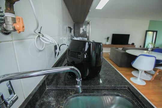 Box, Varanda, Piscina privativa, Armários no quarto, Armários no banheiro, Armários na cozinha, Ar condicionado, Chuveiro a gás, Pode ter animais de estimação, Quarto de serviço, Banheiro de serviço, Varanda gourmet, Quarto extra reversível, Geladeira, Cozinha americana, Mesas e cadeiras de escritório, Área de serviço, Sol da tarde, Cortinas corta luz, Cortina translúcida, Janela anti-ruído, Janelas grandes, Vista livre, Rua silenciosa, Chuveiro elétrico, Microondas, Sofá, Tanque, Tela nas janelas, Varal de roupas, Tomadas 3 pinos, Mesas e cadeiras de jantar, Churrasqueira, Acesso sem degraus, Fogão cooktop, Cama de casal, Espelho no banheiro, Fechadura eletrônica, Energia no imóvel