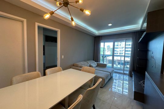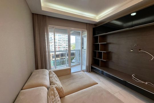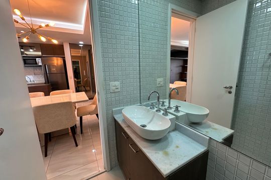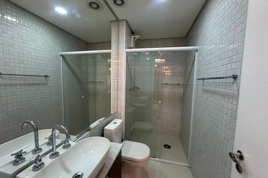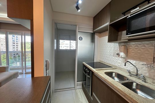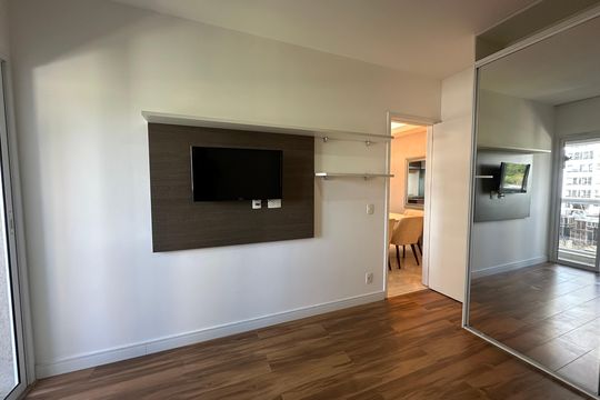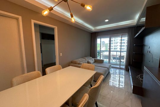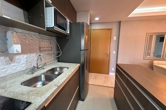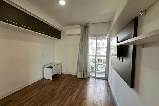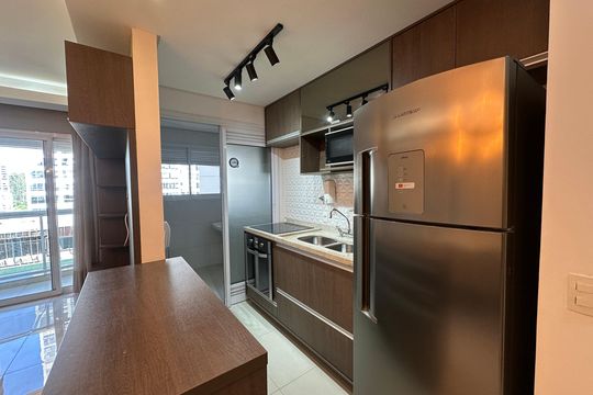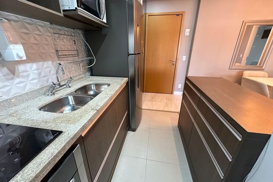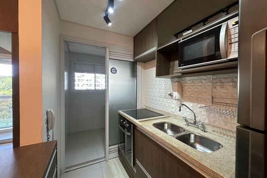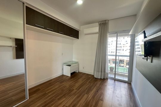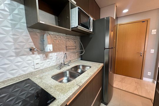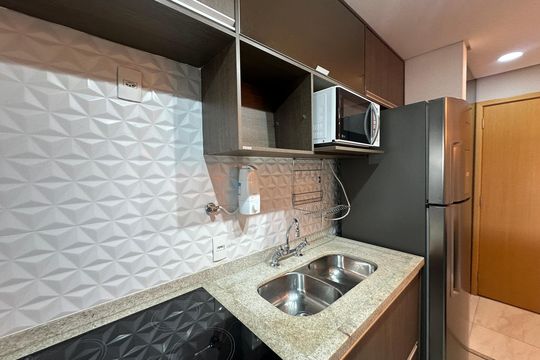 Box, Varanda, Armários no quarto, Armários no banheiro, Armários na cozinha, Ar condicionado, Fogão, Geladeira, Cozinha americana, Mesas e cadeiras de escritório, Área de serviço, Sol da manhã, Janelas grandes, Vista livre, Rua silenciosa, Microondas, Sofá, Tanque, Televisão, Mesas e cadeiras de jantar, Fogão cooktop, Utensílios de cozinha, Cama de casal