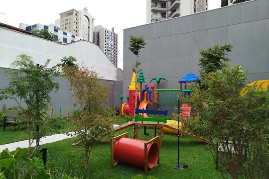 Playground, Piscina, Churrasqueira, Quadra esportiva, Academia, Salão de festas, Brinquedoteca, Corrimão, Piso tátil, Rampas de acesso, Salão de jogos, Vaga de garagem acessível, Área verde